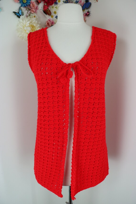 60s 70s Red Knit Sweater Vest With Tie Crochet Sweater Vest Etsy Canada